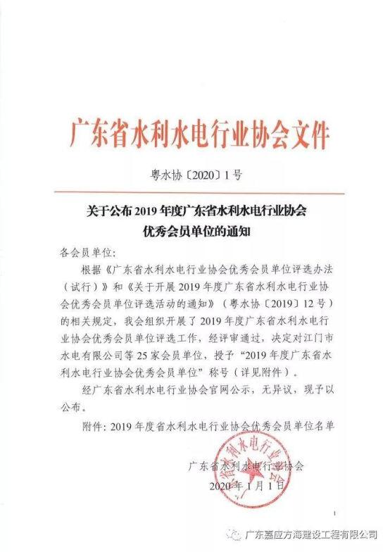 喜報!我司榮獲廣東省水利水電行業(yè)協(xié)會“2019年度優(yōu)秀會員單位”稱號